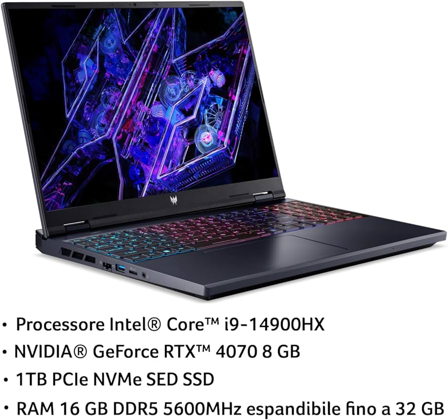 Acer Predator – Notebook – 16″ – Intel Core i9 14900HX – 16 GB – DDR5 SDRAM – 1024 GB – NVIDIA GeForce RTX 4060