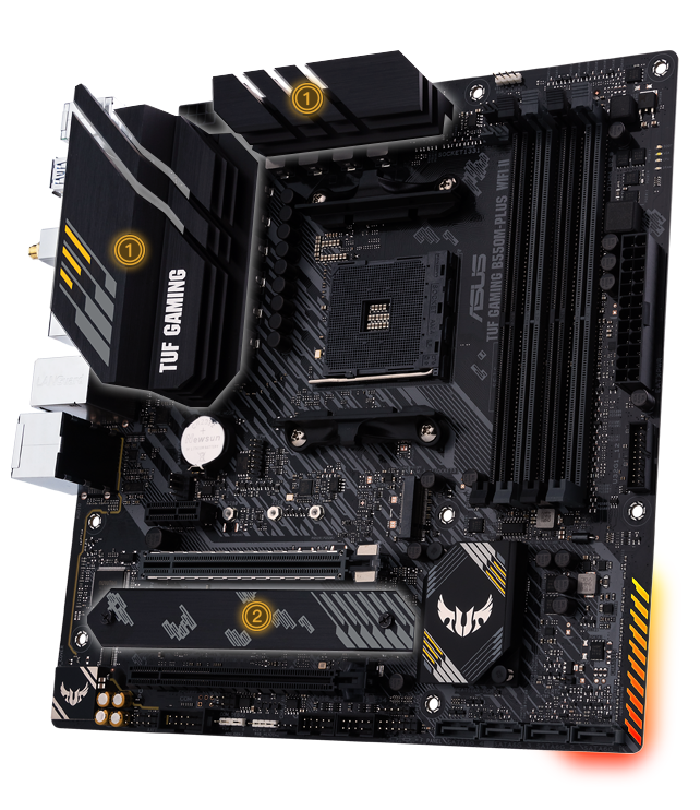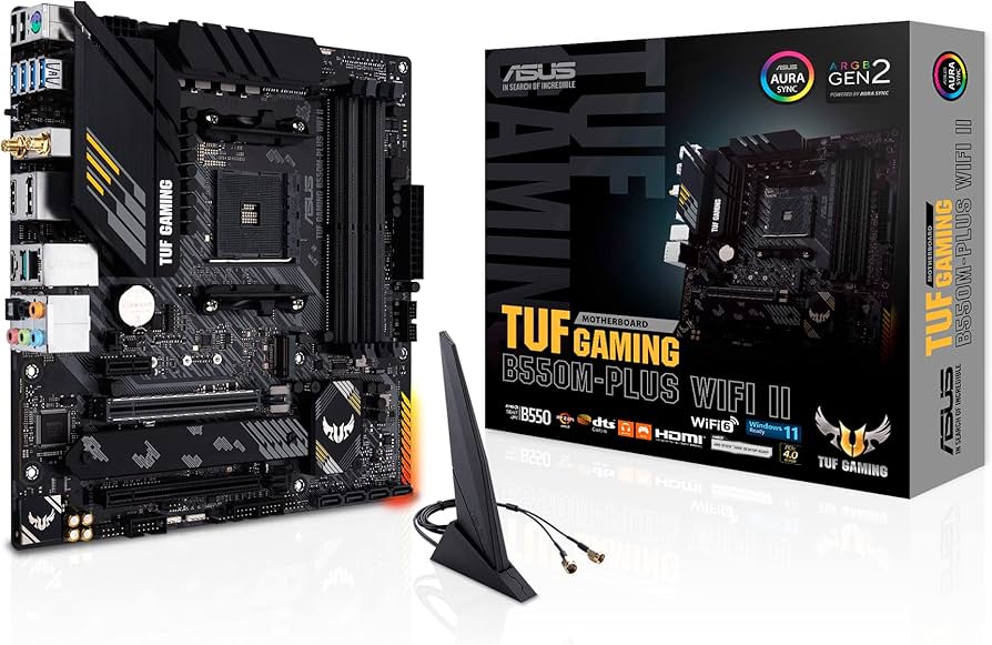 ASUS TUF GAMING B550M-PLUS WIFI II – Placa base – micro ATX – Socket AM4 – AMD B550 Chipset – USB-C Gen2, USB 3.2 Gen 1, USB 3.2 Gen 2 – 2.5 Gigabit LAN, Wi-Fi 6, Bluetooth – Tarjeta gráfica (CPU necesaria) – HD Audio (8-canales)