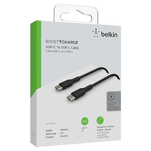 Belkin BOOST CHARGE – Cable USB – 24 pin USB-C (M) a 24 pin USB-C (M) – 2 m – blanco