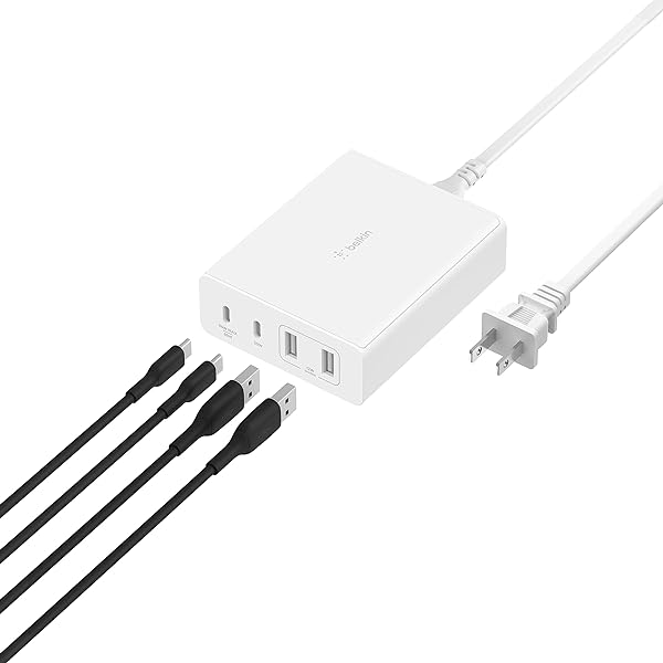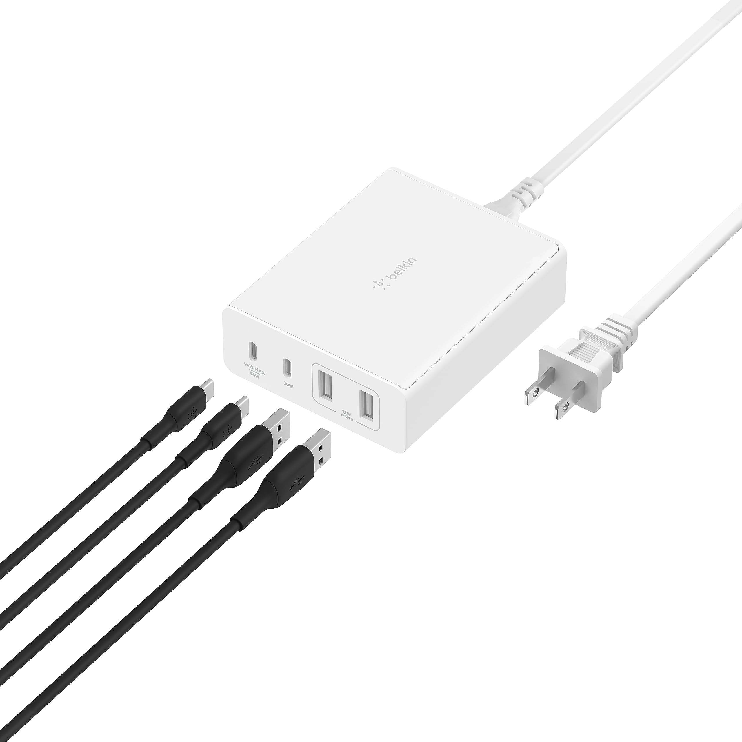 Belkin BOOST CHARGE PRO – Adaptador de corriente – tecnología GaN – 108 vatios – Fast Charge, PD 3.0 – 4 conectores de salida (2 x USB, 2 USB-C) – blanco
