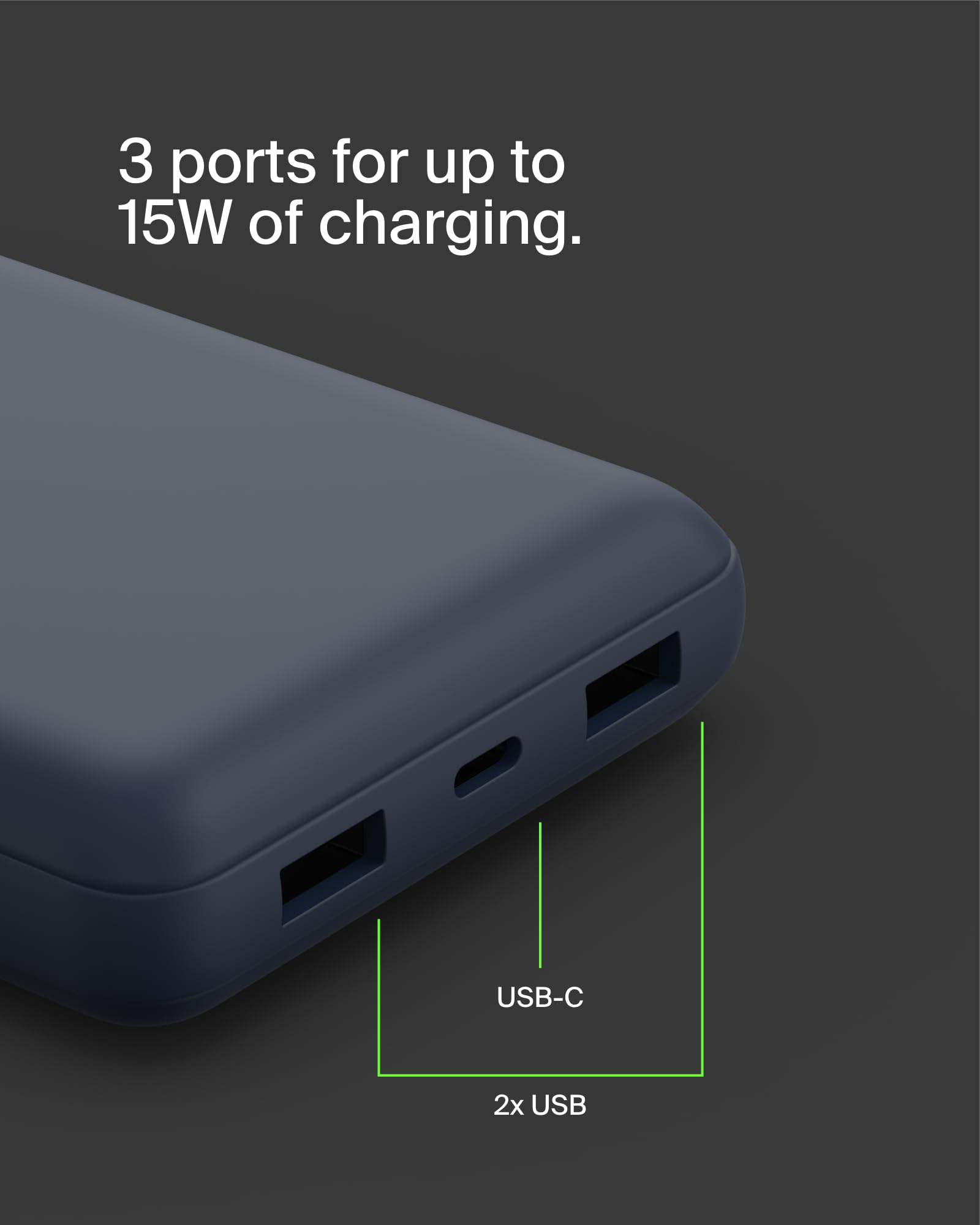 Belkin – Cargador portátil – 20000 mAh – 15 vatios – 3 A – 3 conectores de salida (24 pin USB-C, 2 x USB) – en el cable: USB-C – negro