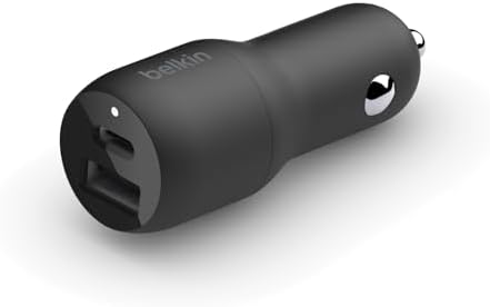 Belkin Dual Car Charger – Adaptador de corriente para el coche – 37 vatios – PD 3.0 – 2 conectores de salida (USB, 24 pin USB-C)